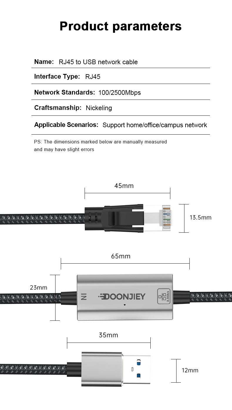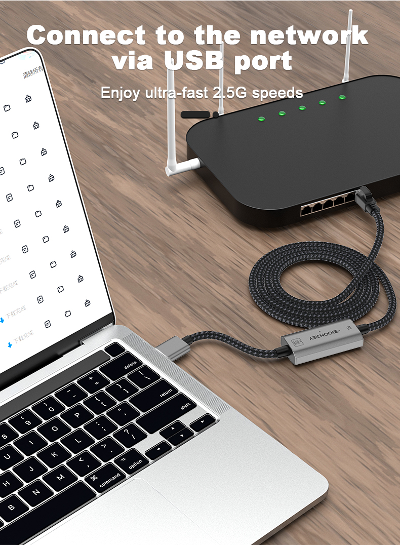 USB to Ethernet Cable USB to RJ45 2.5G Gigabit High speed Wired LAN Network Adapter Directly Connected for Laptop Tablet Desktop