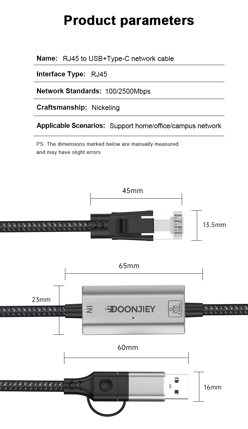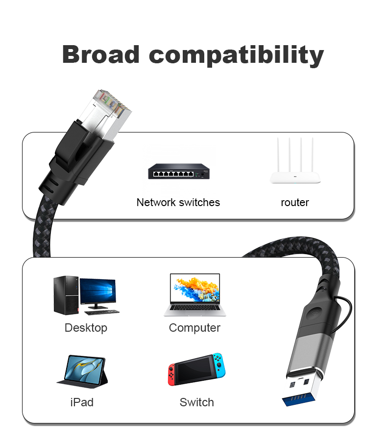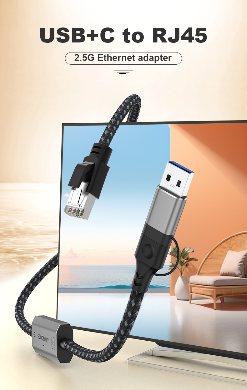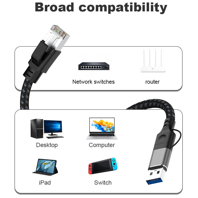 2in1 USB-C/USB 3.0 to Ethernet Adapter Type C to RJ45 2.5G Gigabit High speed LAN Network Cable For Mobile Phone Tablet Laptop