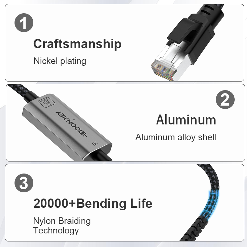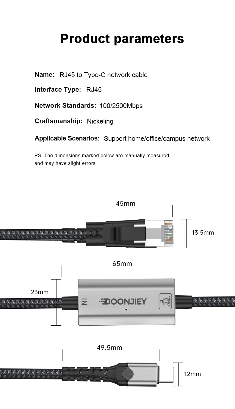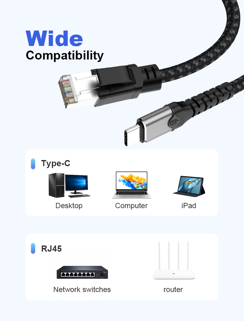2.5G Type C to Ethernet Cable 2500Mbps USB C to RJ45 LAN Network Wired Weaving Adapter Plug and Play for Laptop Tablet Desktop