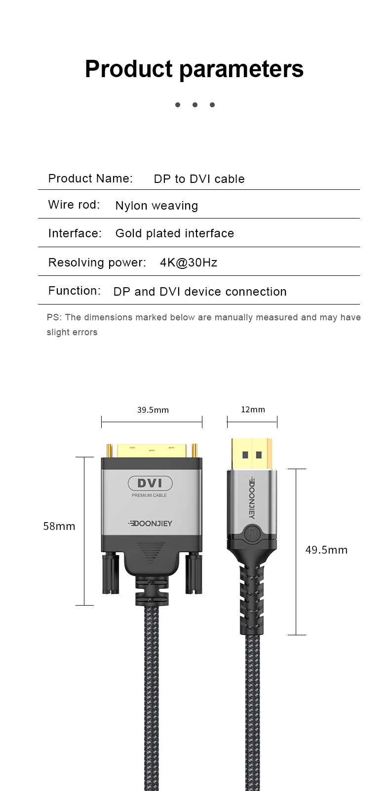 DisplayPort DP to DVI Adapter Connecto Cable Conversion Line Support 4K 30Hz Video Cord for Desktop Laptop TV Projector Cables
