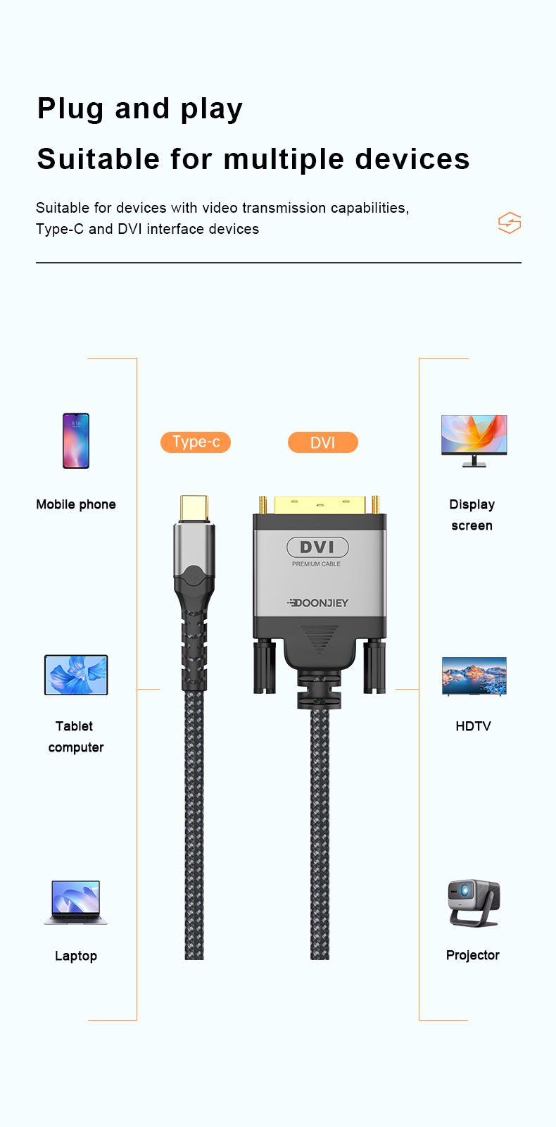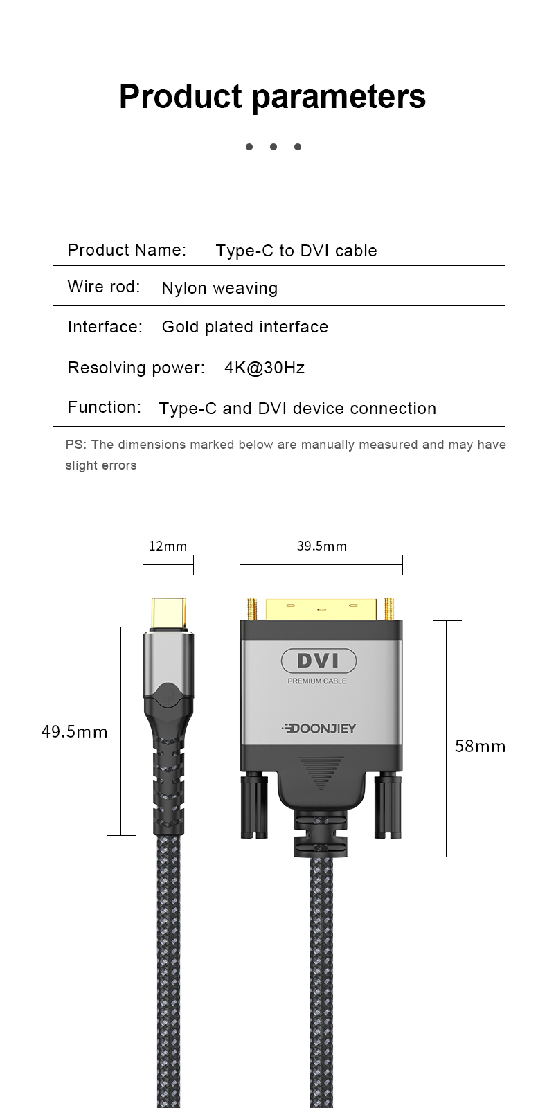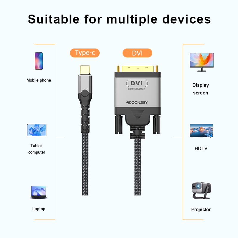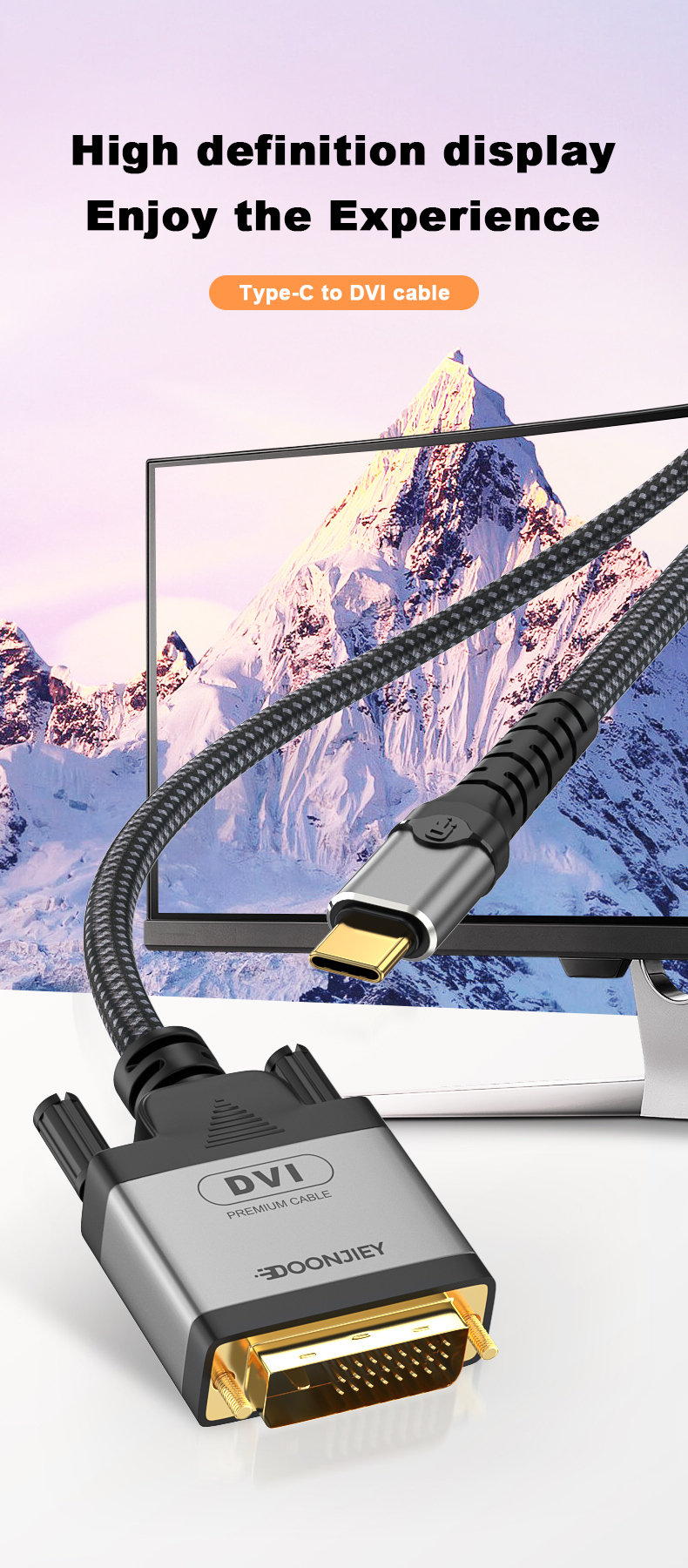 USB C to DVI Adapter Cable Male-Male High-definition 4K 30Hz TYPE C to 24+1 DVI Cable For Laptops Monitor Projectors Converte